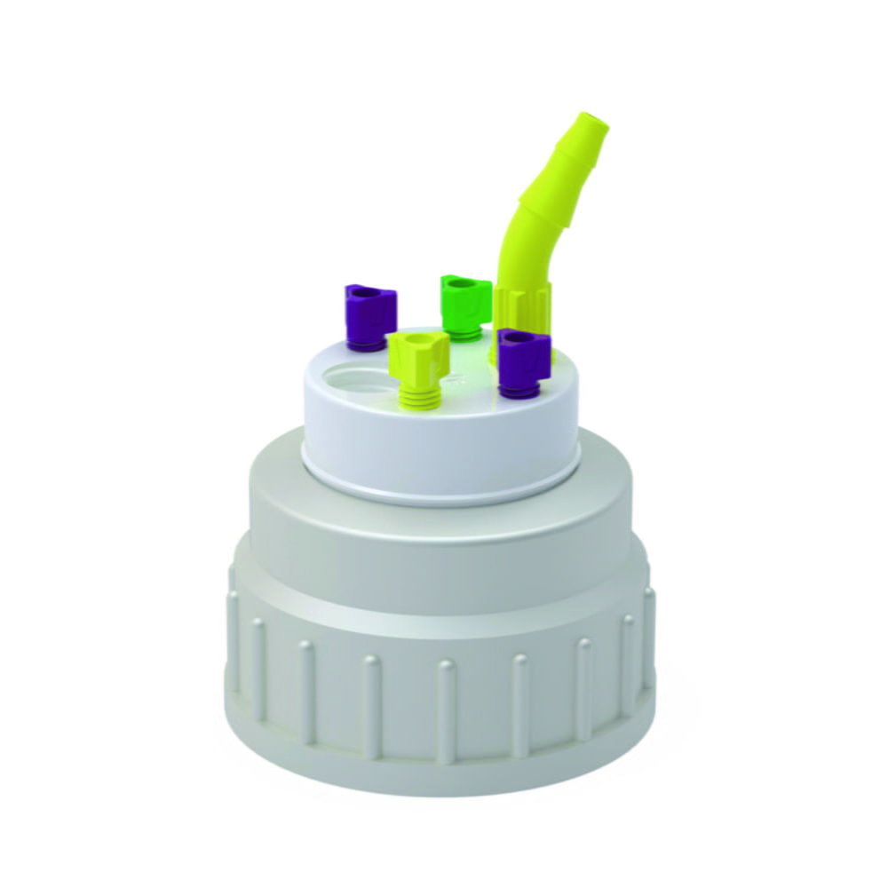 Screw caps with free movable insert made of PTFE. Depending on the version, for connecting capillaries (O.D. 1.6/2.2/3.2 mm) and hose olives for tubing with I.D. 5.5 to 8 mm. A b.safe exhaust air filter can be screwed into the thread GL 14 (not included in the scope of supply).